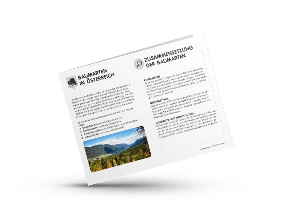 Zum Thema "Baumarten in Österreich" haben wir nicht nur zahlreiche Arbeitsblätter und dazugehörige Factsheets, sondern auch viele Infografiken. Schau gleich rein bei Fakten & Infografiken für Forstwirtschaft!