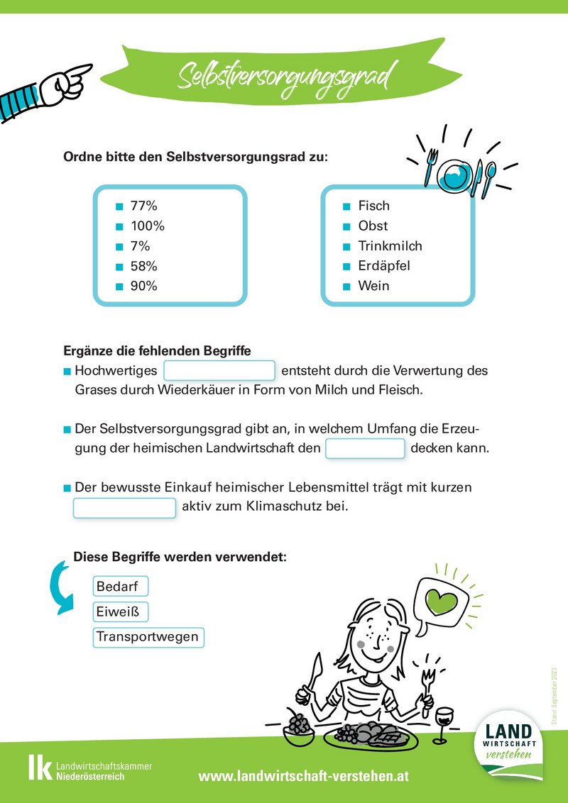 Arbeitsblatt zur Versorgung mit heimischen Lebensmitteln