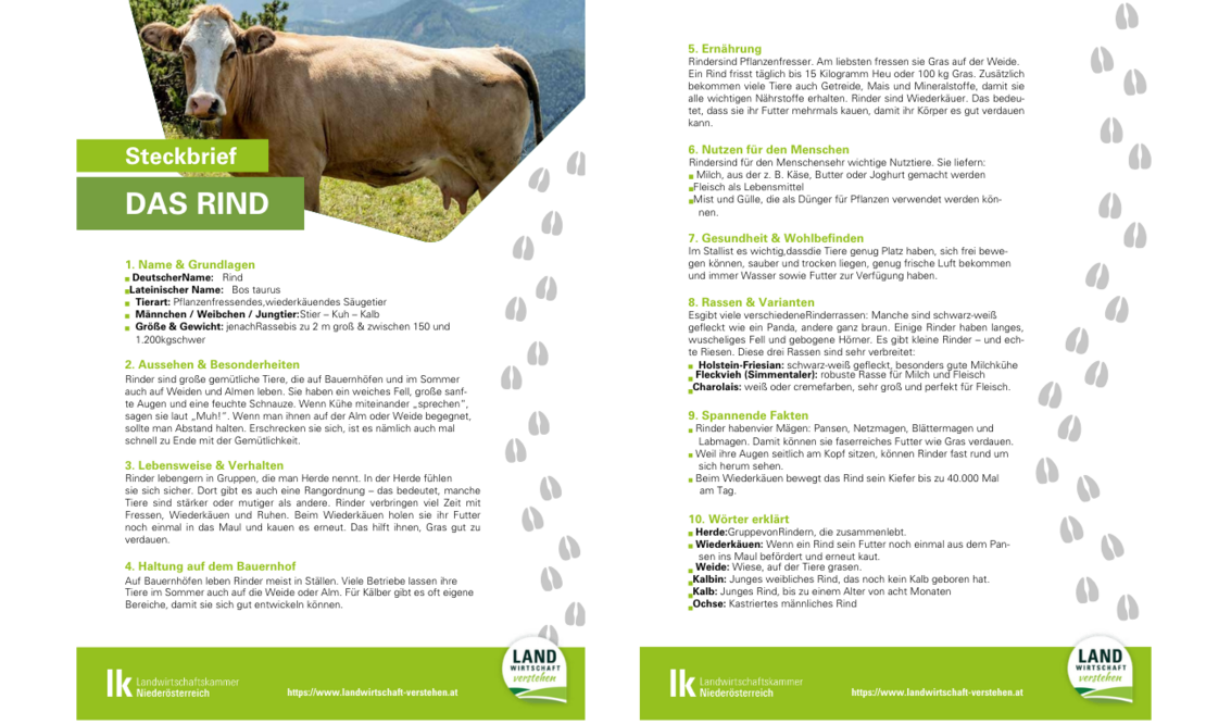 Hier findest du übersichtlich gestaltete Steckbriefe zu Nutztieren vom Bauernhof, die du kostenlos herunterladen kannst.DiezweiseitigenA4-SteckbriefeenthaltenkindgerechtaufbereiteteInformationenzudenbekanntestenTierenvomBauernhof.Diese Arbeitsblätter zum Thema Bauernhof eignen sich perfekt zum Nachschlagen, Lernen und Wiederholen und sind somit ideal für die Volksschule oder auch für zu Hause.Und das Beste: Das Angebot wird laufend erweitert, weitere Nutztiere folgen.Einfach herunterladen und loslegen!