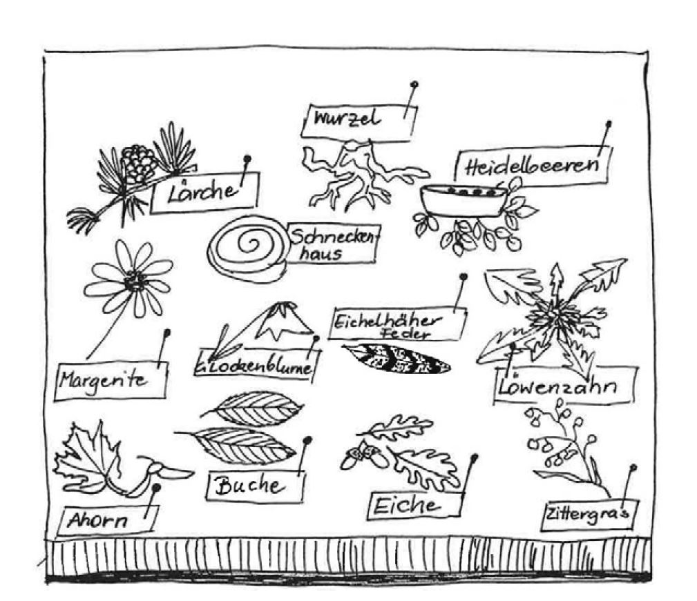 Zur Erinnerung kannst du aus all diesen Schätzen einen Naturlehrpfad nachbauen.