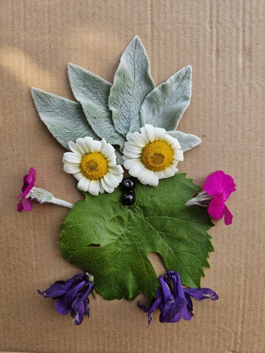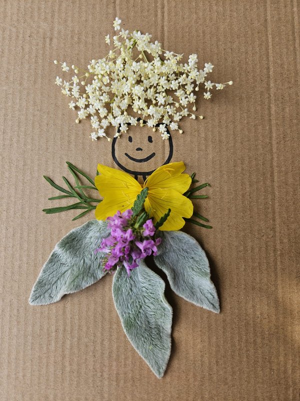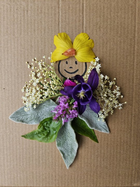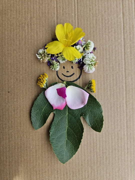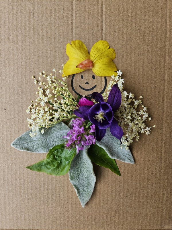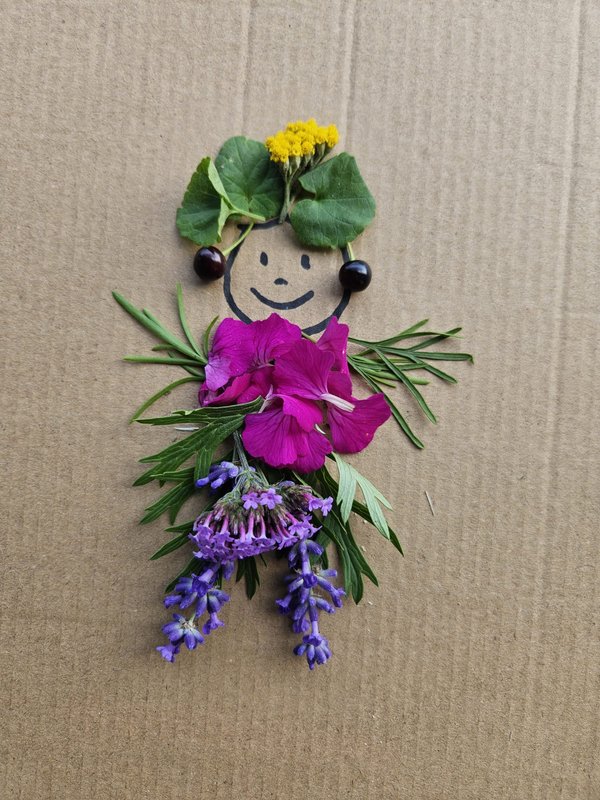 - Maxerl, Tänzerinnen und Gesichter legen: Wähle große oder kleine Blüten, runde oder spitze Blätter und forme damit Gesichter oder Männchen.