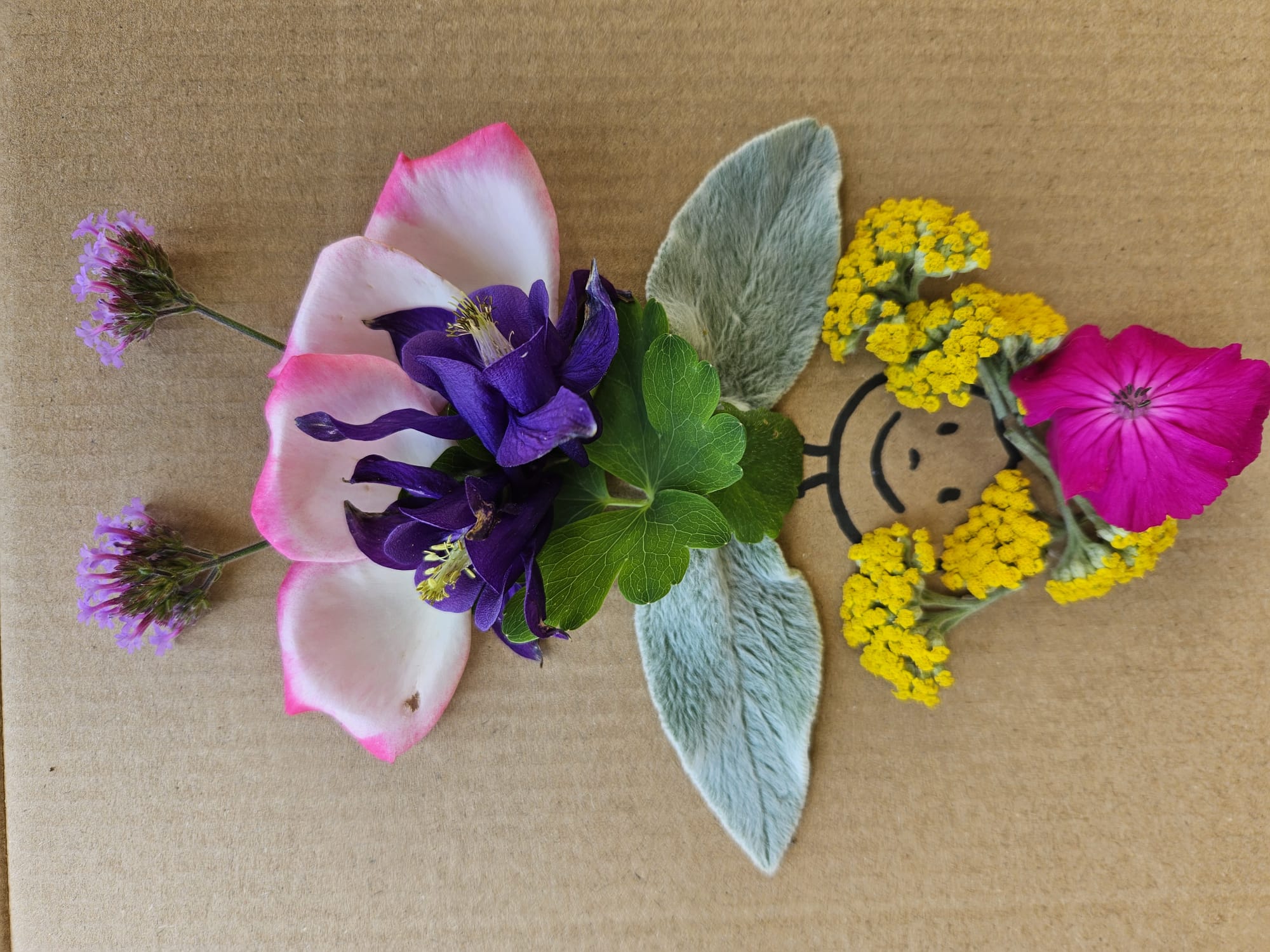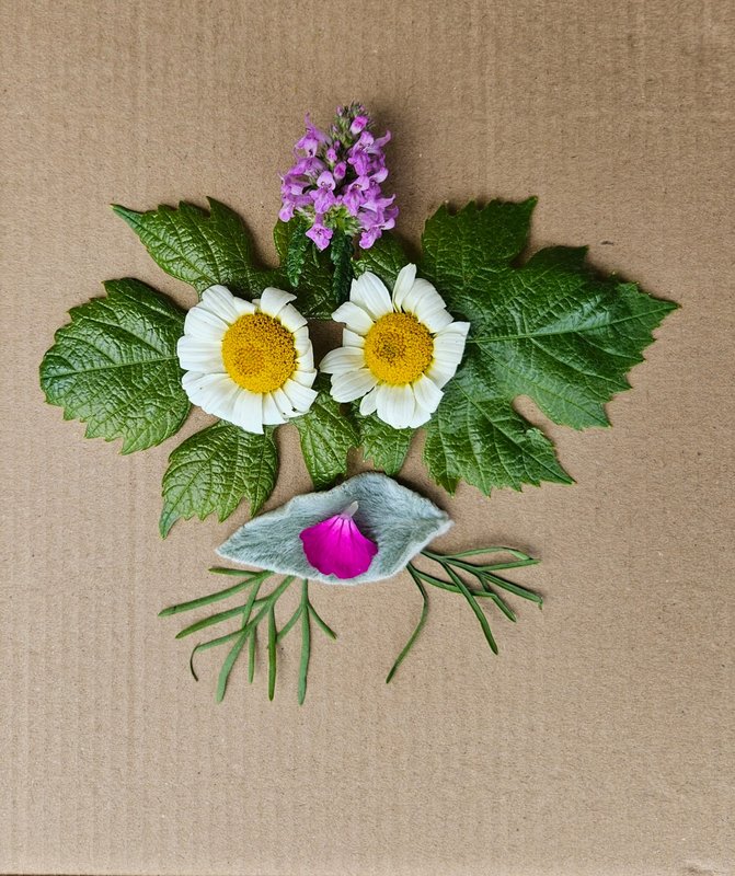 - Unterlage vorbereiten: Lege die Blüten und Blätter vor dir auf den Tisch oder wenn du möchtest, auch auf einen stabilen Karton oder ein Blatt Papier. Dies dient als Basis für deine Kunstwerke.