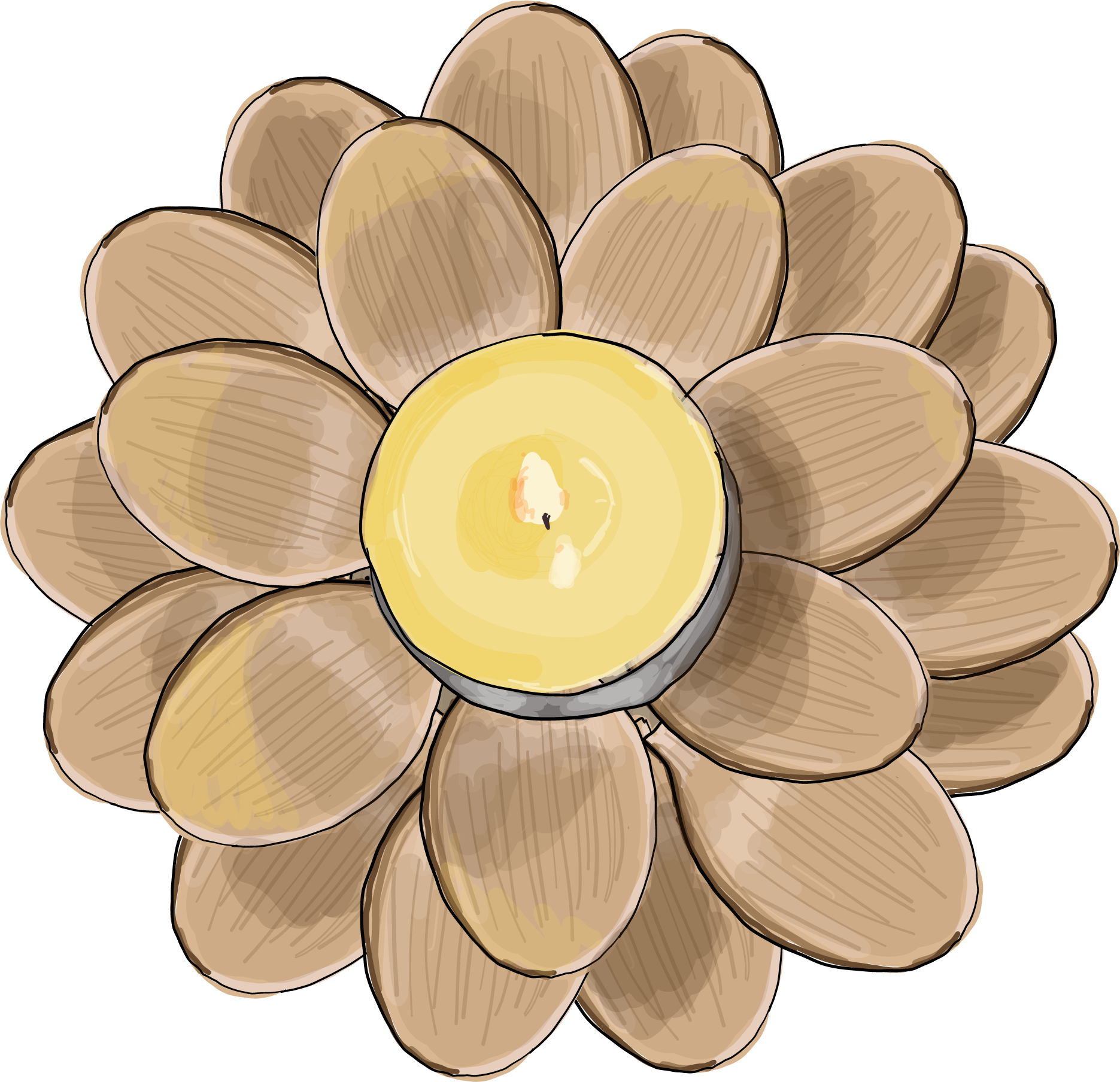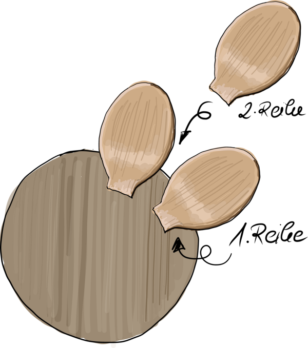 - Nun beginnt der zweite Kreis. Der ist darüber und leicht versetzt. Platziere hier die Löffelköpfe kreisförmig, bis auch diese Runde fertig ist. Wenn du willst, kannst du auch noch eine dritte Rund emit Löffelköpfen machen. Die Löffelköpfe sollten nun eine kreisörmige Schale bilden, in deren Mitte man das Teelicht setzen kann.