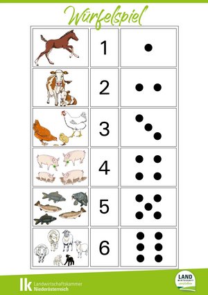 Mit dem Würfelspiel "Zählen lernen" werden die Zahlen spielend einfach mit tierischen Motiven von den Kindern erlernt. Das Spiel kann alleine gespielt werden, aber besser ist es, wenn mehr Kinder mitmachen