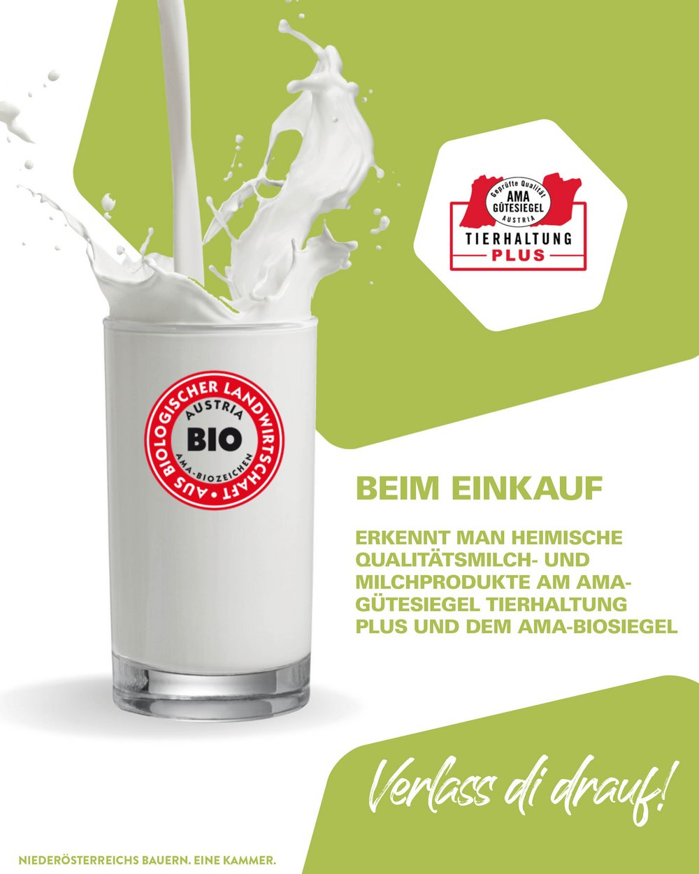 Beim Einkauf erkennst du heimische Qualitätsmilch und Qualitätsmilchprodukte am AMA-Gütesiegel Tierhaltung Plus und dem AMA-Biosiegel.