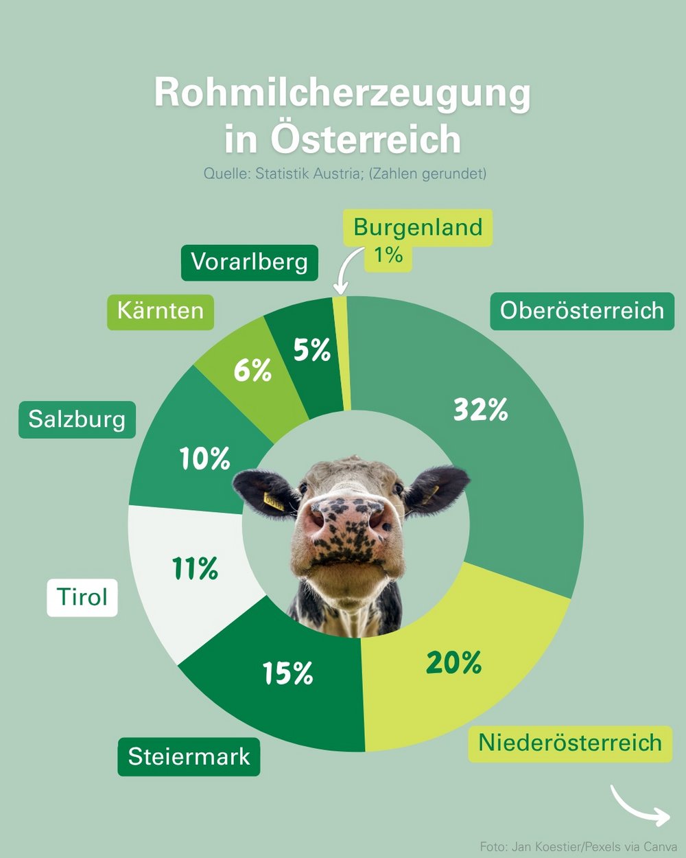 So viel Rohmilch produzieren Österreichs Bundesländer