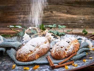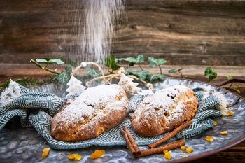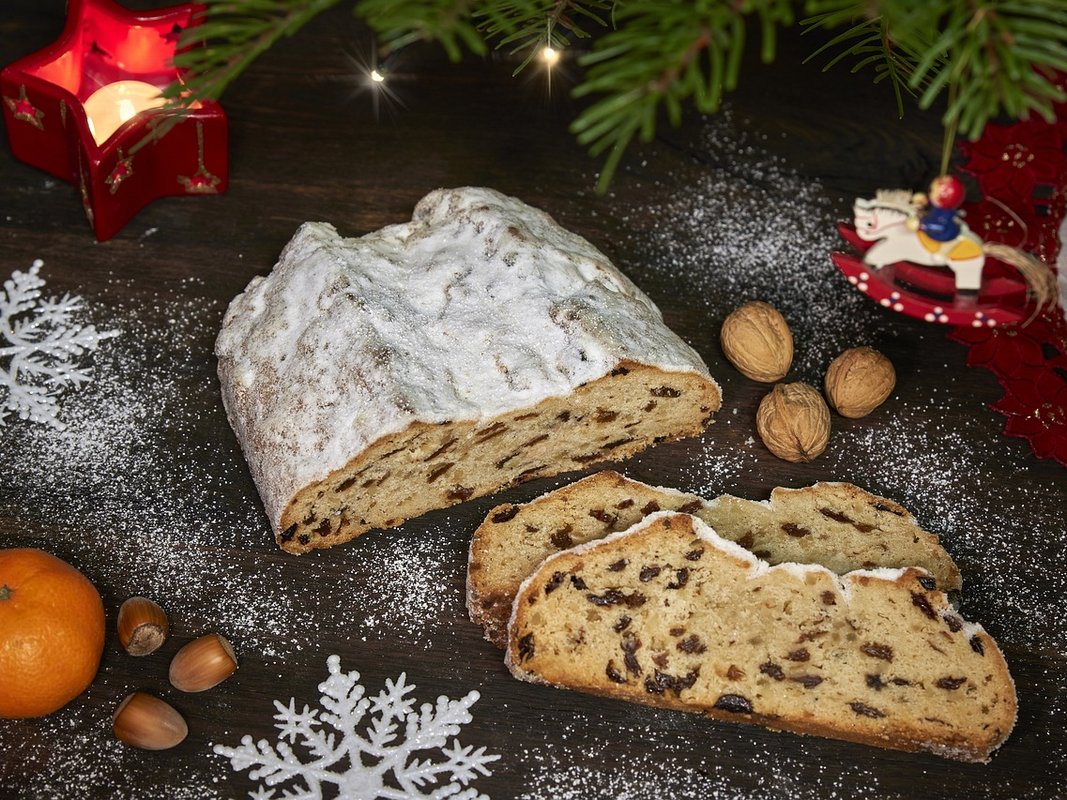 Weihnachtsstollen sind auch ein Symbolgebäck.Die Form des Stollens soll die Form des Christkinds darstellen und die Zuckerschicht die Windeln. Deshalb vergiss nicht, das Christkind gut „einzuzuckern“, damit es nicht friert.