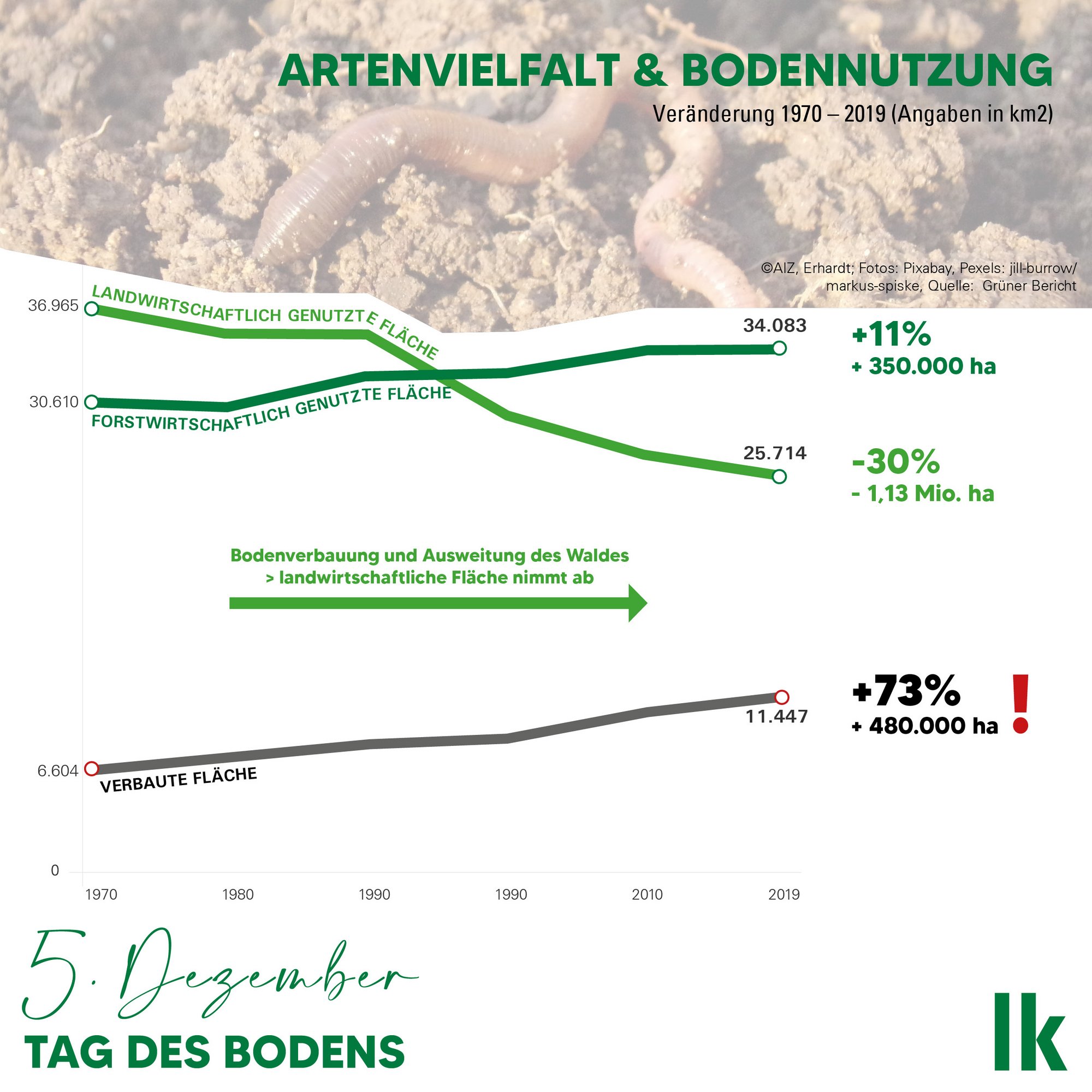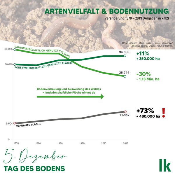 Am 5. Dezember rufen wir uns in Erinnerung wie wertvoll gesunder Boden ist. Anders als man vielleicht meint gibt es Boden nicht wie Sand am Meer. Es dauert ganze 2.000 Jahre bis zehn Zentimeter nährstoffreiche Erde entstehen. Neue Gebäude, Straßen, Parkplätze: All das braucht Platz und guten Boden. Ein sorgsamer Umgang mit dem Boden ist deshalb das oberste Gebot. Vor allem der Humusgehalt des Bodens ist entscheidet dafür, dass ein Boden fruchtbar, gegen Erosion stabil und bei Nässe oder Trockenheit belastbar ist. Genau hier setzen österreichische Bäuerinnen und Bauern heutzutage mit ihrer Arbeit den Hebel an. Wetterextreme machen es notwendig, die Böden besonders fit zu halten, damit auch künftig beste Lebensmittel für unsere Teller geerntet werden können.