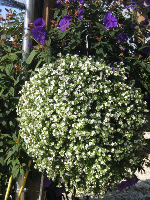 Inzwischen gibt es auch großblütige Sorten der Bacopa mit einem Blütendurchmesser von bis zu 3 cm. Das Neueste am Markt sind gefüllt blühende Sorten, die ein völlig neues Blütenbild bieten. Die neuen Sorten wachsen kompakt, zunächst aufrecht und werden später überhängend.