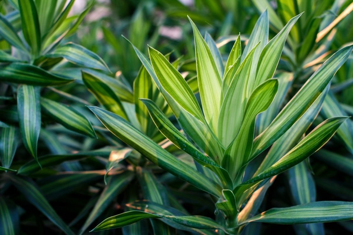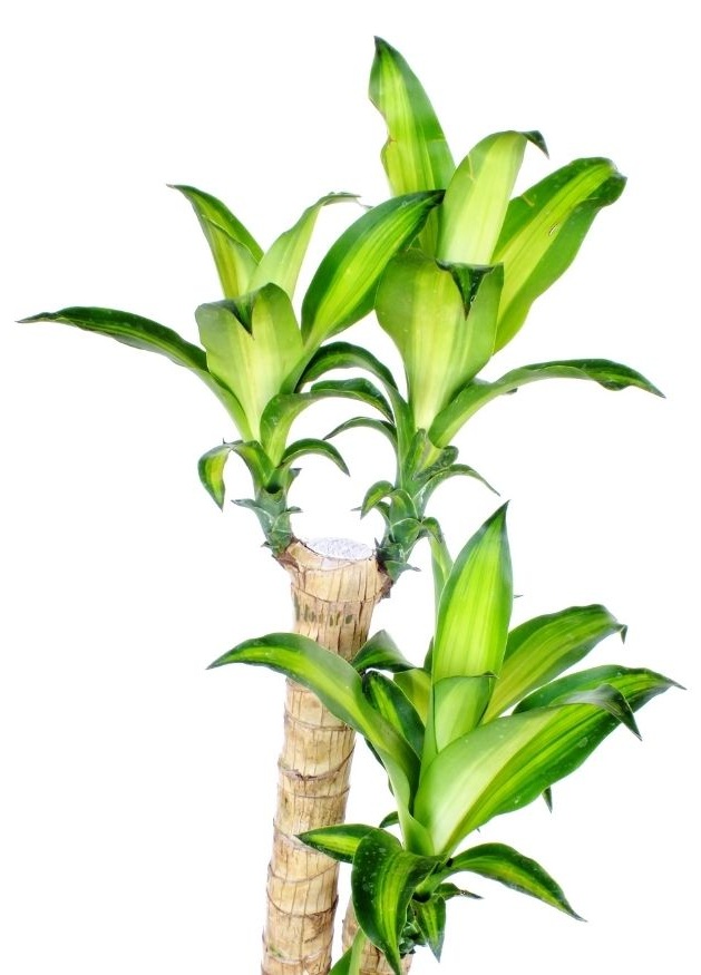 Die am häufigsten in unseren Zimmern anzutreffende Drachenbaum-Art ist Dracaena fragrans. Sie wird in ihrer Heimat zwei bis vier Meter hoch. Als Indoor-Pflanze erreicht sie je nach Art der Kultur eine Höhe von 40 bis 50 cm. Ihre Blätter bilden durch ihre gelben und grünen Streifen und ihren eng zusammenstehenden Wuchs einen bunten Blattschopf.