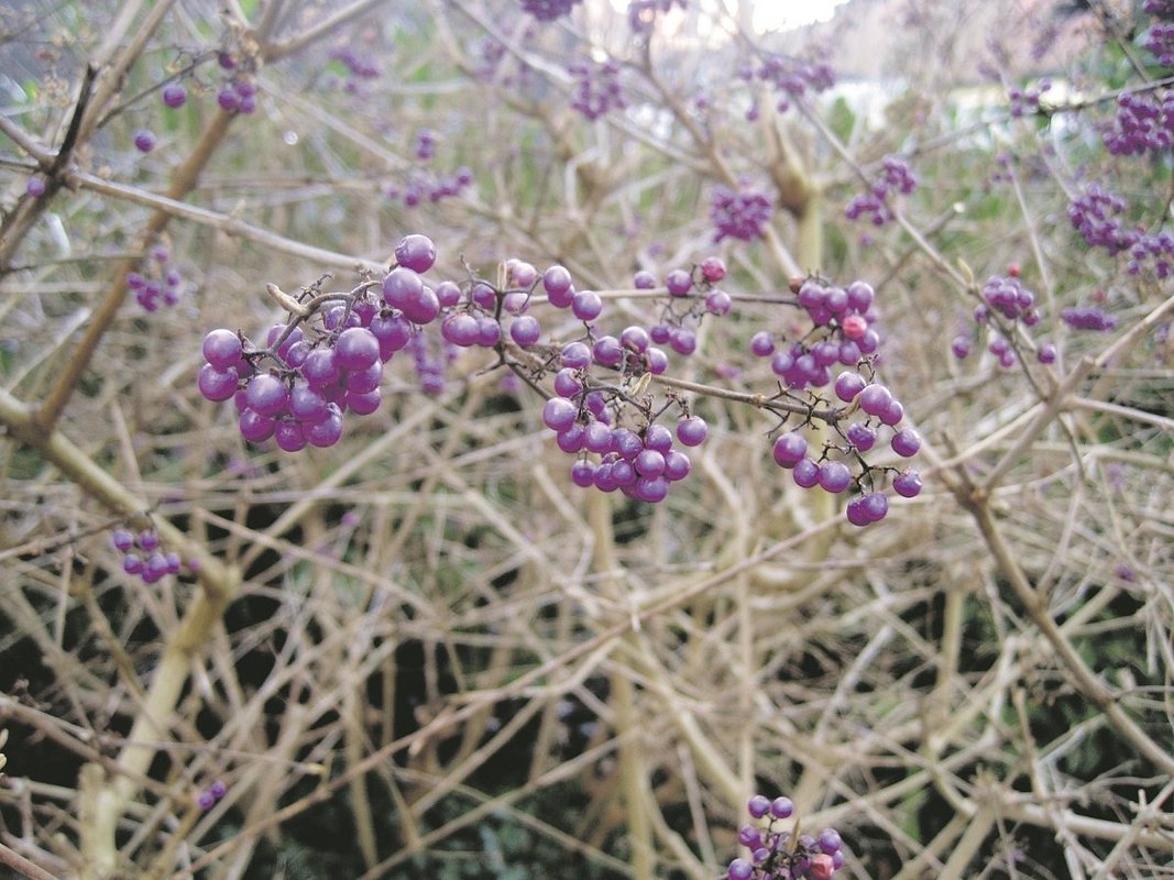 Die Schönfrucht wird auch Liebesperlenstrauch genannt. Er wird rund zwei Meter hoch und ist ein Blickfang für den Garten. Erscheint die Pflanze zwar bis September eher ein unscheinbarer Geselle zu sein, zeigt sie sich dann ab Herbst von ihrer schönsten Seite. Violett glänzende Beeren leuchten aus dem Strauch hervor. Die auffälligen Kügelchen halten sich noch weit bis in den Winter hinein. Selbst abgeschnitten sind die Zweige eine Dekovariante für die eigenen vier Wände. Die Schönfrucht kann einzeln oder gruppenweise in den Garten gesetzt werden. Kombinationen mit anderen Sträuchern, die ebenfalls besondere Herbstfärbungen versprechen, sind dabei besonders reizvoll.