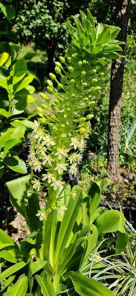 Das imposanteste Merkmal der Schopflilie ist sicherlich ihre Blüte. Der sich über die Blattrosette erhebende Blütenstand trägt zahlreiche Blüten und ist mit einem Blattschopf gekrönt. Die unterschiedlichen Arten haben grüne oder auch violett getupfte Blätter, erreichen eine Blütenhöhe von 10 bis 120 cm und bevorzugen einen hellen Standort mit durchlässigem Boden. Im Topf ist Kakteensubstrat zu bevorzugen. Die attraktive Blüte macht auch in der Vase als lang haltbare Schnittblume eine gute Figur.