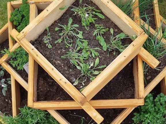 Um ein Pyramidenbeet zu erhalten, muss man drei bis vier verschieden große Holzquader bauen, aufeinandersetzen und mit Erde befüllen. Alles, was man dafür braucht, sind Holzbretter und Nägel zum Fertigen der Holzrahmen sowie Erde zum Befüllen. Die Holzbretter sollten mindestens zwei Zentimeter dick sein.