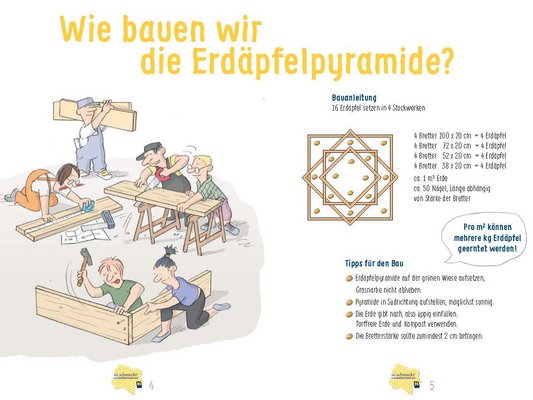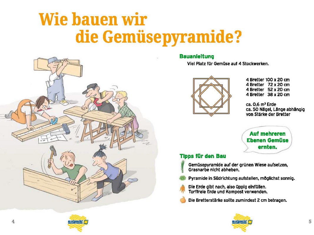 Doch die Pyramide ist nicht nur schön anzusehen. Man begibt sich mit ihr auf eine landwirtschaftliche Entdeckungsreise. Säen, pflegen, ernten, schmecken - all das bringt die Pyramide auf den Punkt und schafft damit Einblicke in den bäuerlichen Jahreskreis. Sie veranschaulicht, wie unsere Lebensmittel wachsen und woher sie kommen. Und das mit nur wenig Aufwand. Denn alles was man dafür braucht sind Holzbretter, Nägel, Erde und Samenkörner.