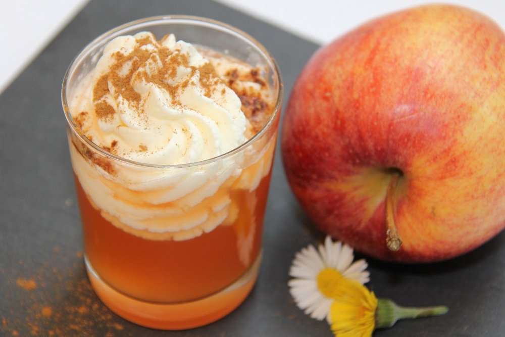 Den Apfelsaft in einen Topf geben und mit dem Zucker sowie den Zimtstangen aufkochen lassen. Für etwa zehn Minuten bei kleiner Hitze köcheln lassen, bis sich der Zucker vollständig aufgelöst hat. Vom Herd nehmen und abkühlen lassen.
