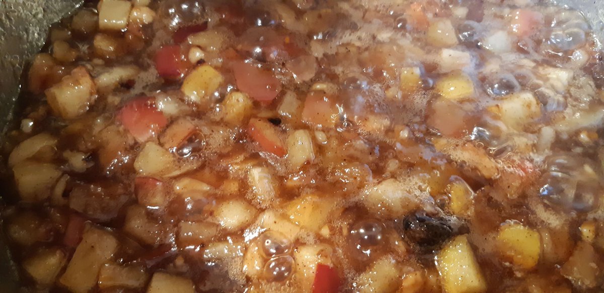 Alle Zutaten in einen Topf geben, mit dem Apfelsaft aufgießen und mit Gelierzucker und den Gewürzen einige Minuten aufkochen, in Marmeladegläser füllen und verschließen.