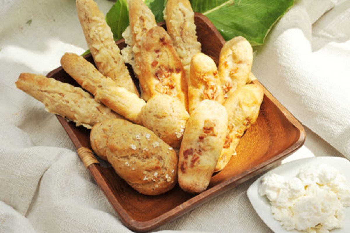 Dinkelvollmehl, Topfen, Ei, Backpulver, Salz, Brotgewürz und Buttermilch zu einem glatten Teig verkneten.