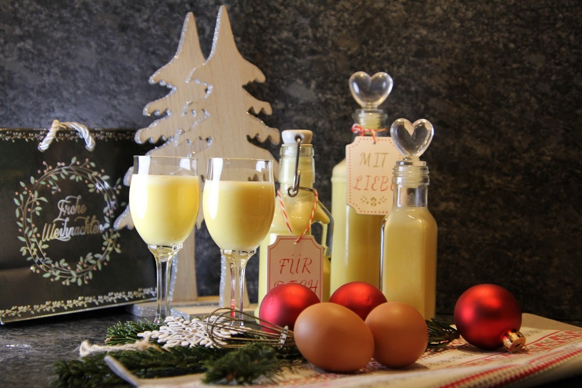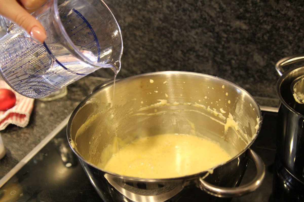 Diese Puddingmasse unter ständigem Rühren in die schaumig geschlagene Dottermasse einrühren. Etwas überkühlen lassen und den Kornbrand einrühren.