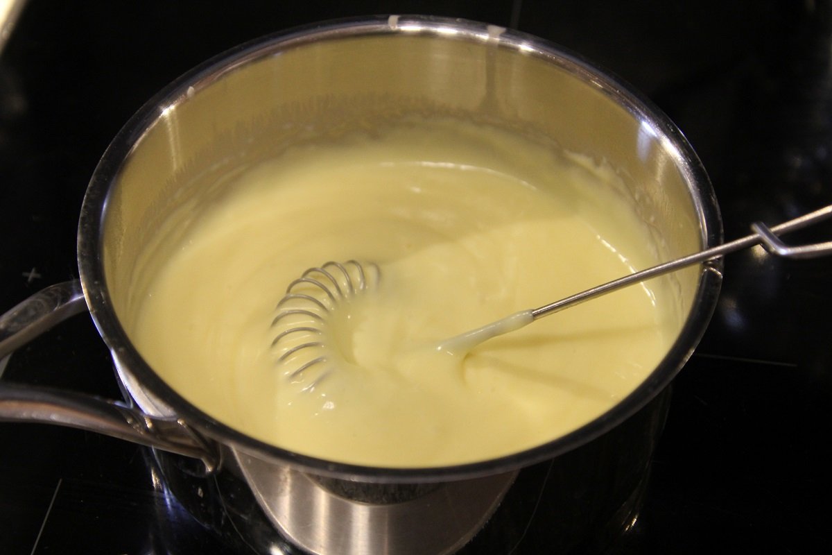 Das Vanillepuddingpulver mit dem Zucker und der Milch verrühren, in die Vanille-Schlagobers-Milch Masse einrühren und wie einen Pudding kurz aufkochen.