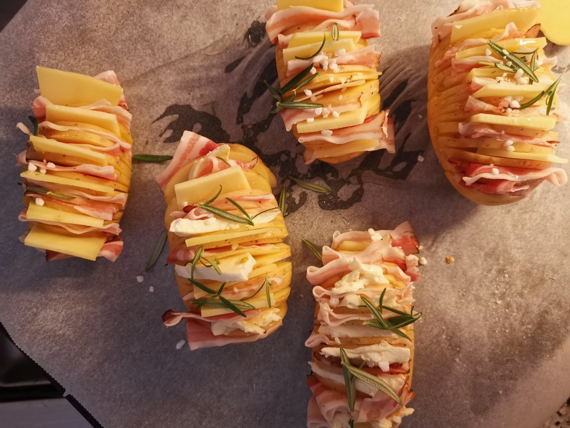 Der Grill wird auf rund 200 °C indirekte Hitze vorbereitet. Die Fächerkartoffeln kann man in einer Auflaufform oder auf einer Grillplatte zubereiten. Die Gardauer beträgt ca. 50 - 60 Minuten.