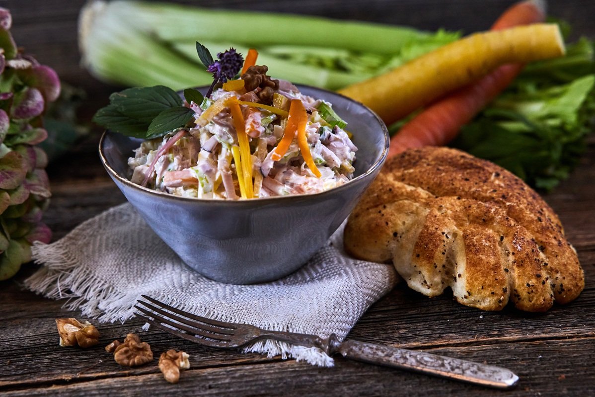 - Salat der Saison, z.B. Vogerlsalat gehackte Walnüsse und Kresse