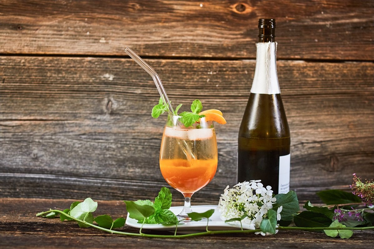 Eiswürfel in ein Glas geben, mit Frizzante oder Sekt aufgießen und zum Schluss langsam den Marillensirup eingießen.