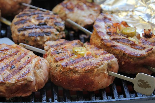 Die Rouladenspieße auf jeder Seite ca. 3-5 Minuten grillen und mit der Honig-Bier-Marinade bestreichen.
