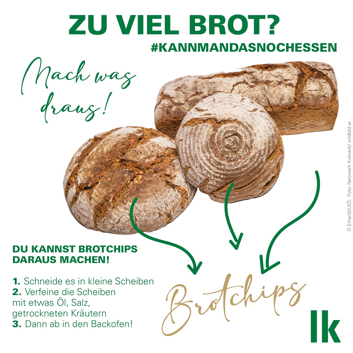 Viele Speisereste lassen sich auch ganz leicht zu köstlichen Gerichten verarbeiten. Wie wär's zum Beispiel mit einer leckeren Brotsuppe oder einem süßen Kipferlauflauf? Doch nicht nur wenn man zu viel Gebäck gekauft hat, gibt es passende Rezepte. Auch wenn zu viele Erdäpfel gekocht wurden, gibt es Lösungen, die am Mülleimer vorbeiführen. Erdäpfelstangen oder ein Auflauf lassen die tollen Knollen in neuem Licht erstrahlen.