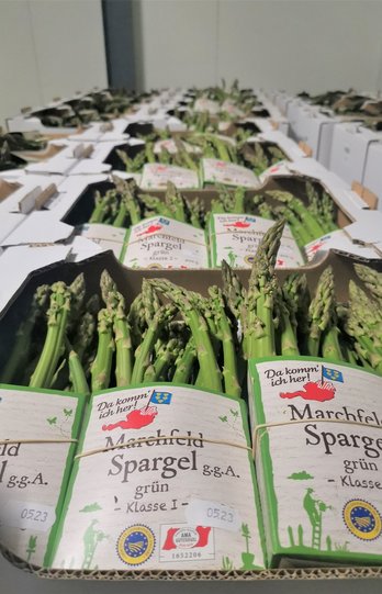 Das Gütezeichen der EU „geschützte geografische Angabe g.g.A.“ garantiert die regionale Herkunft des Produkts und verpflichtet Landwirt:innen zur Einhaltung festgelegter Produktionsregeln und Kontrollbestimmungen. Diese sollen die hohe und durchgehend konstante Qualität des Spargels aus dem Marchfeld sicherstellen. Somit zählt der Marchfeldspargel g.g.A., genau wie Champagner, Prosciutto di Parma oder Steirisches Kürbiskernöl, zum erlesenen Kreis der ausgewählten Spezialitäten und daher zu den am strengsten kontrollierten Lebensmitteln Europas.