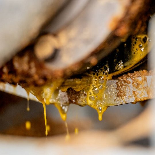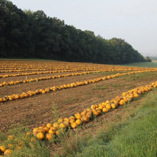Kürbisse sind sehr anspruchsvolle Pflanzen. Sie lieben es sonnig, windgeschützt und nicht zu trocken. Mitte April bis Mitte Mai werden die Kürbissamen mit einer Sämaschine in Reihen angebaut. Die Pflanze beginnt zu keimen und zu wachsen. In dieser Zeit machen andere Pflanzen dem Kürbis seinen Platz streitig. Sie müssen mit der Unkrauthacke und per Hand entfernt werden. Etwa Mitte Juni bedecken die Kürbispflanzen das ganze Feld, man nennt das auch ranken. In dieser Zeit beginnen die Pflanzen zu blühen. Bei optimalem Wetter können nun unsere Bienen und Wildbienen mit ihrer Arbeit beginnen. Sie bestäuben unsere Pflanzen und sorgen dafür, dass grüne Kürbisse wachsen. Im Herbst sind sie reif und werden orange. Erst dann werden sie mit dem Kürbisschieber in Bahnen geschoben und mit der Erntemaschine geerntet. Beim Ölkürbis werden nur die Kerne verwendet. Diese werden gewaschen und getrocknet. Der Großteil der Kerne wird zu Kürbiskernöl weiterverarbeitet.