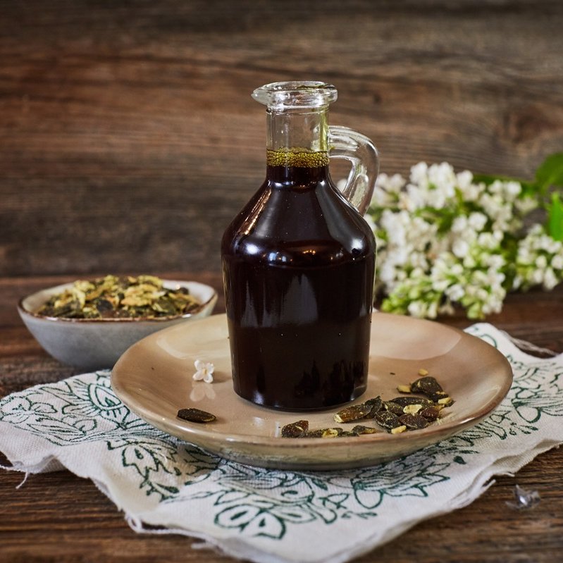 … dass man für 1 Liter Kürbiskernöl ca. 2,3 kg Kerne von rund 20 Ölkürbissen braucht?