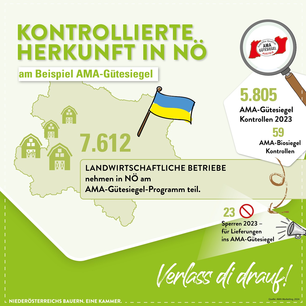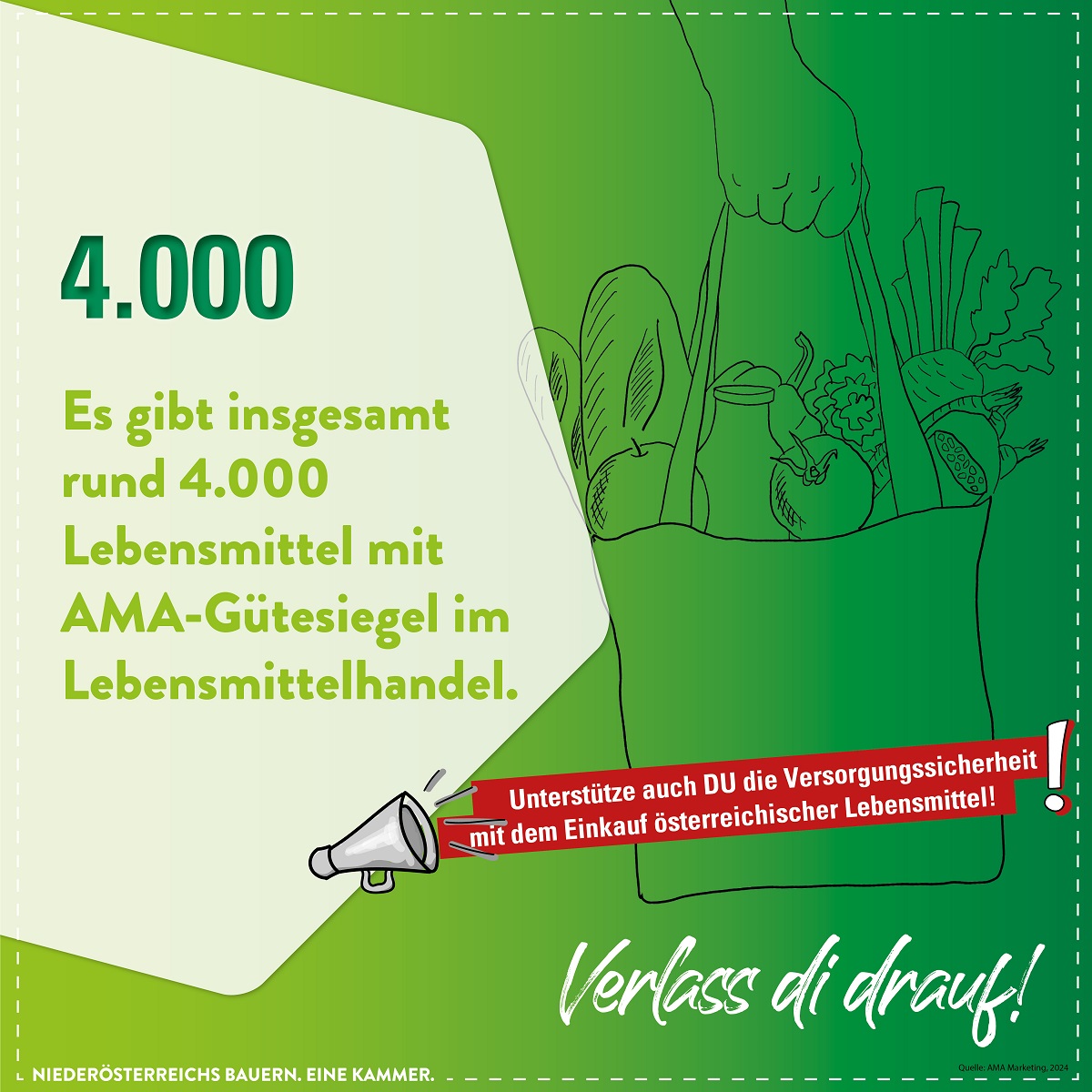 Gute Qualität aus Österreich erkennst du außerdem am AMA-Gütesiegel. Es ist das bekannteste Qualitätszeichen für heimische Lebensmittel. Wenn Lebensmittel dieses Gütesiegel tragen, heißt das u.a., dass der ganze Herstellungsprozess kontrolliert wurde und die Qualität über den geforderten Produktionsstandards liegen.