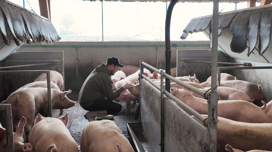 Ein Arbeitstag auf Hermanns Schweinehof beginnt früh – noch vor Sonnenaufgang geht es nach einem schnellen Kaffee direkt in den Stall. Gemeinsam mit seinen Eltern und Mitarbeiter:innen kümmert er sich um die Tiere: Fütterung vorbereiten, Rundgänge machen, die Gesundheit der Schweine überprüfen und sicherstellen, dass alles im Stall funktioniert. Danach warten je nach Jahreszeit Feldarbeiten wie Säen oder Ernten auf ihn, aber auch Organisation und Büroarbeit stehen auf dem Plan. Abends folgt dann eine letzte Kontrolle der Schweine, bevor der Tag zu Ende geht