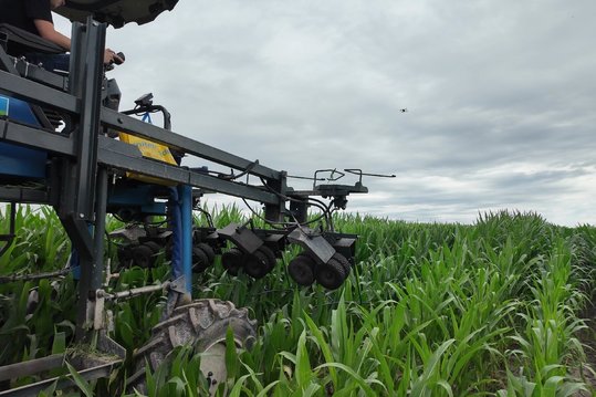 Es gibt immer eine männliche und eine weibliche Maispflanze bei der Saatgutvermehrung am Feld. Klingt fast romantisch – ist aber ziemlich technisch. Am Feld wachsen die Pflanzen in klaren Reihen: Zwei bis drei Reihen Väter, dann vier Reihen Mütter – immer im Wechsel. Von oben sieht das aus wie ein grünes Muster. Die männlichen Pflanzen sind übrigens meist heller als die weiblichen. Der Pollen der Väter wird vom Wind zu den Müttern getragen – Hummeln und Bienen braucht es hier keine. Und noch eine Besonderheit gibt es beim Mais, der zur Saatgutvermehrung dient: Mütter und Väter werden zeitlich versetzt angebaut.
