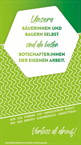Die Landwirtschaftskammer NÖ hat als erste und einzige Kammer die Agrarkommunikation „auf Augenhöhe“ mit den anderen Fachgebieten wie Pflanzenbau oder Tierhaltung gestellt, indem sie eine eigene Abteilung geschaffen hat. Getreu dem Motto „Tue Gutes und rede darüber“ arbeitet ein Team aus professionellen Expert:innen in Presse- und Öffentlichkeitsarbeit an der Vermittlung der Werte und Leistungen der niederösterreichischen Bäuerinnen und Bauern.