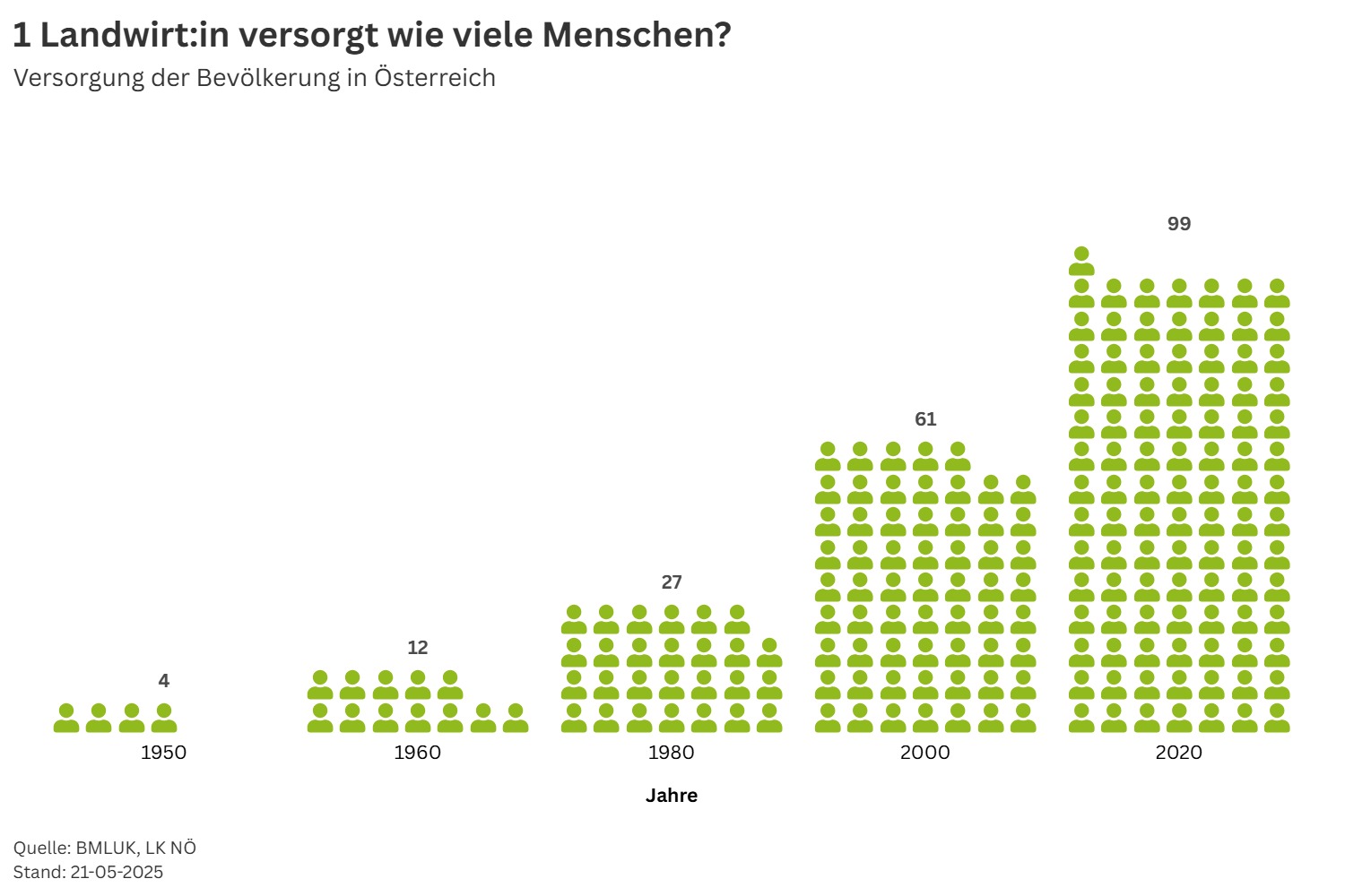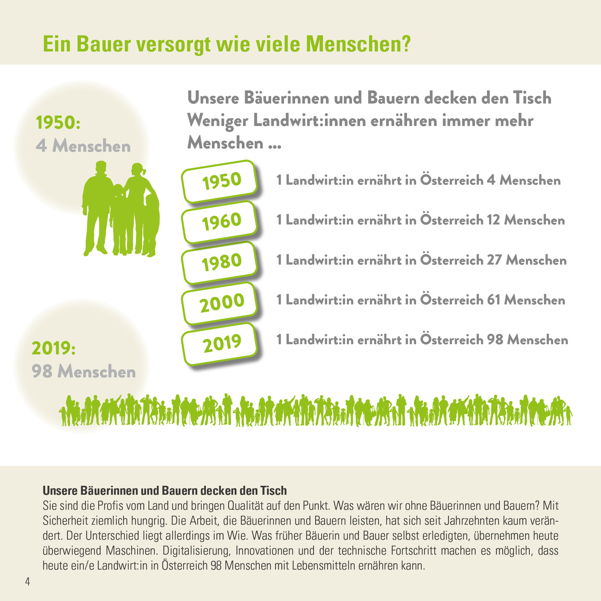 Wie viele Personen ein Bauer über die Jahre versorgt(e)