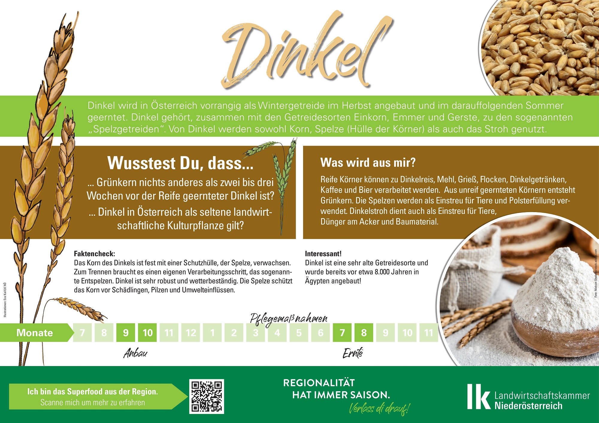 Die weltweit am häufigsten angebauten Getreidekulturen sind Weizen, Mais, Dinkel und Hafer. Aber auch Gerste und Roggen haben in Österreich eine große Bedeutung.