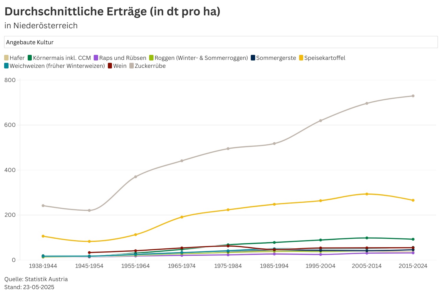Die durchschnittlichen Erträge der angebauten Kulturen von damals bis heute