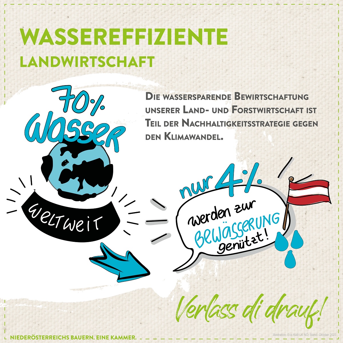 Um den Herausforderungen des Klimawandels zu begegnen, werden verschiedene Anpassungs- und Nachhaltigkeitsstrategien in der Land- und Forstwirtschaft verfolgt. Dazu gehören Maßnahmen zur Wassereffizienz, zur Bodenbedeckung und zur Verbesserung der Bodenstruktur. Die Landwirtschaftskammer Niederösterreich engagiert sich in Forschungs- und Bildungsprojekten zur Förderung einer wassereffizienten Landwirtschaft. Beratungskräfte werden beispielsweise verstärkt in wissenschaftliche Netzwerke eingebunden, um überregionale Wasserversorgung zu unterstützen.