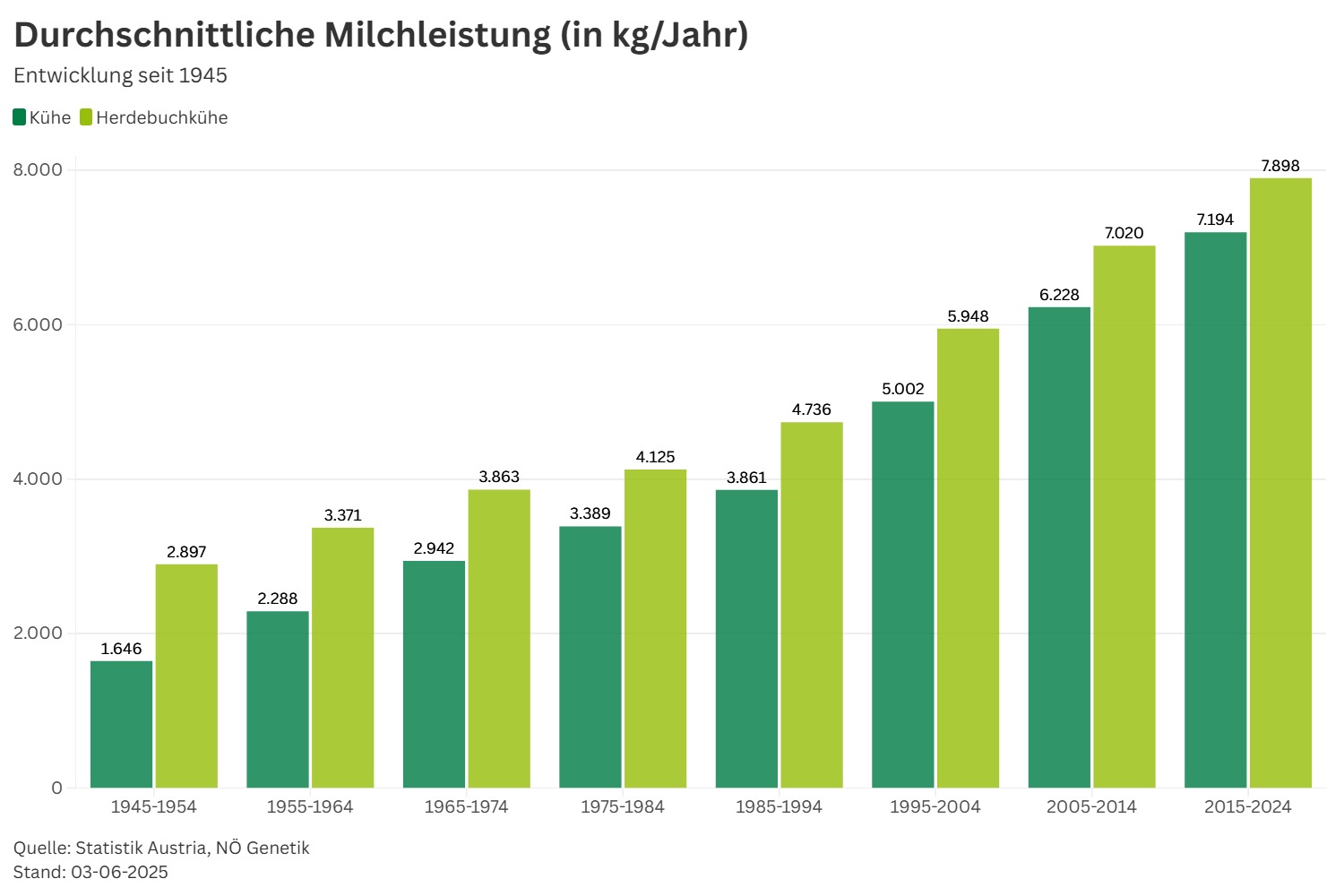 Durchschnittliche Milchleistung von damals bis heute im Vergleich