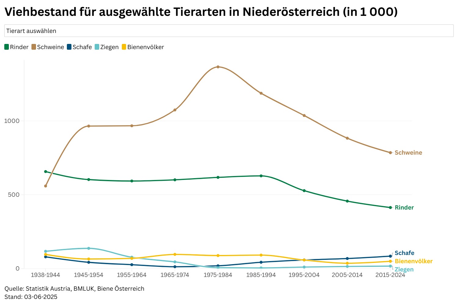 Anzahl der Tiere auf unseren Bauernhöfen im Laufe der Zeit
