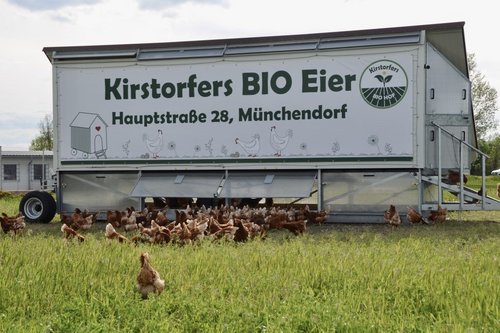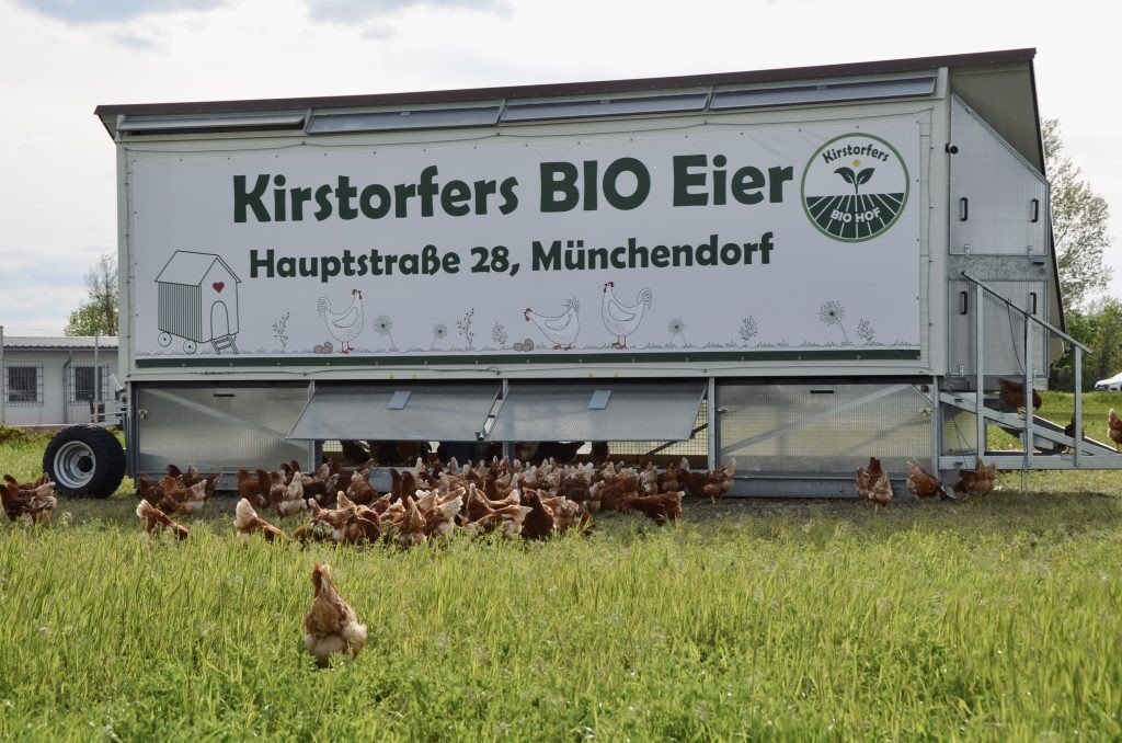 Die Familie Kirstorfer ist seit über 30 Jahren für die Produktion und den Ab-Hof-Verkauf von Spargel bekannt. Sohn Florian entschied sich vor einigen Jahren den Hofladen dauerhaft offen zu halten und begann das Sortiment sukzessive zu erweitern. Dazu investierte er in einen mobilen Hühnerstall. „Unsere „Mädl´s“, so nennen wir in der Familie unsere Legehennen, sind die beste Werbung für unseren Hofladen. Da brauchts zusätzlich eigentlich kaum noch etwas.“ so Florian Kirstorfer.