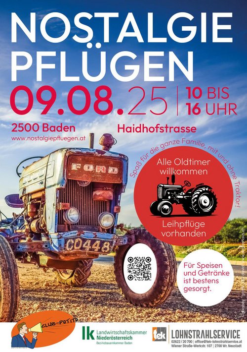 Ob mit eigenem Traktor, als Zuschauer:in oder einfach zum Ausprobieren – beim Nostalgiepflügen war jede:r willkommen! Es war ein spannender Tag am Feld mit viel Spaß für die ganze Familie. Leihpflüge standen bereit, Oldtimer-Traktoren waren herzlich willkommen! In der Jausenhütte gab's regionale Schmankerl, kühle Getränke und genug Platz zum Genießen.