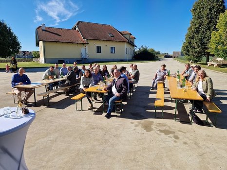 Am 24. September 2025 lud die OE der BBKn Baden, Bruck/L.-Schwechat und Mödling zum Netzwerken auf den Bauernhof der Familie Zanker nach Bruck a. d. Leitha. Im Rahmen der Veranstaltung HOFhopping gaben die Betriebsführer Lisa und Sebastian einen Einblick in ihren Betriebsalltag. Besonderes Interesse hatten die mehr als 70 Besucher am umgebauten Schweinestall, bei dem man auf den ersten Blick erkennt, dass das Tierwohl an oberster Stelle steht. Die Gruppenbuchten sind großzügig gestaltet und bieten den Ferkeln viel Platz, um sich auszutoben und so optimal entwickeln zu können.
