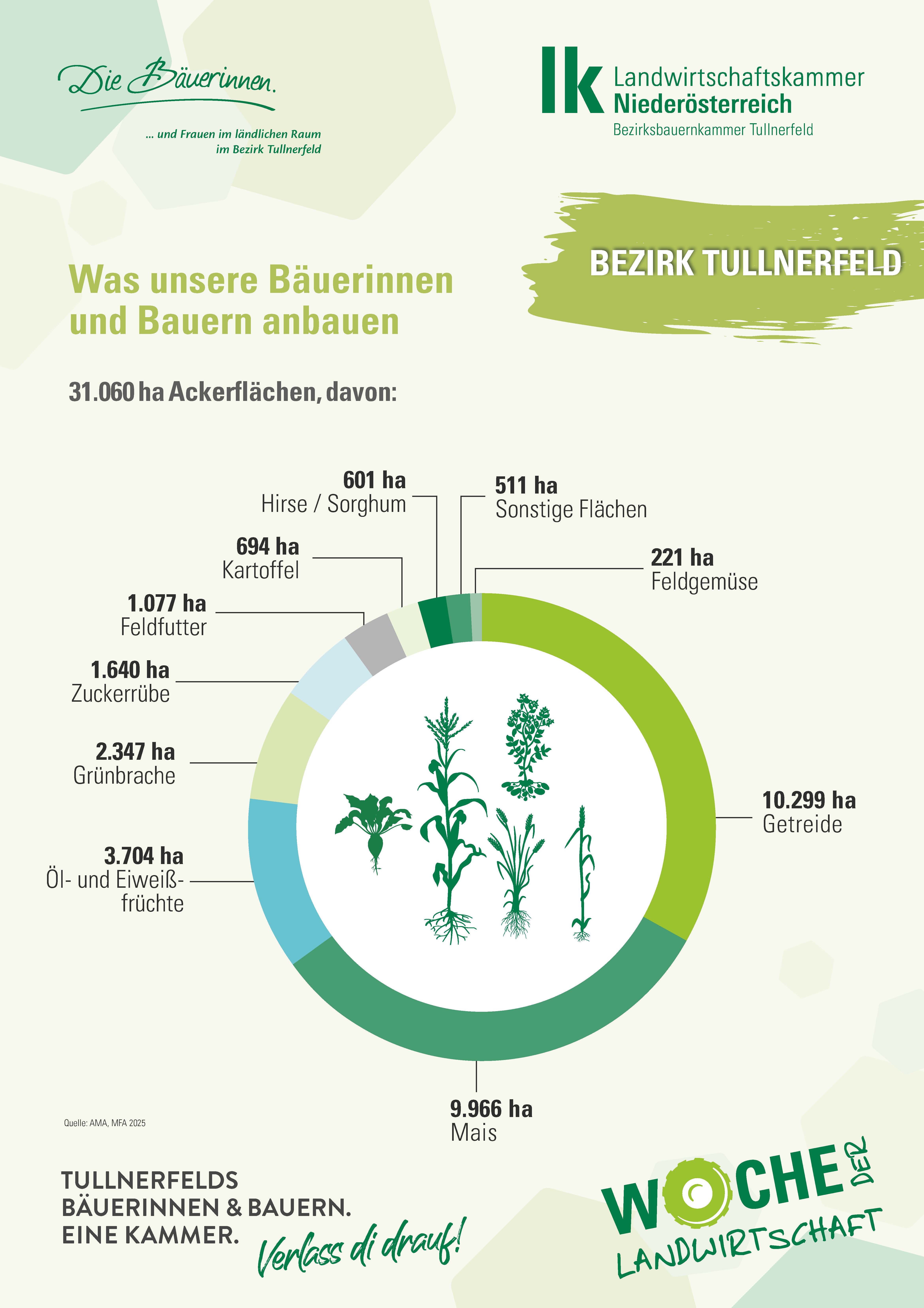 Doch die Landwirtschaft steht auch vor großen Herausforderungen: Trockenheit, Schädlingsdruck und unfaire Wettbewerbsbedingungen. Vizepräsident der Landwirtschaftskammer NÖ, Ing. Lorenz Mayr, fordert gleiche Standards für importierte Waren und appelliert an Konsument:innen, bewusst heimische Lebensmittel zu kaufen. Wer direkt beim Bauern oder der Bäuerin einkauft oder im Handel auf das AMA-Gütesiegel achtet, stärkt nicht nur die regionale Wertschöpfung, sondern auch die Versorgungssicherheit in Österreich.