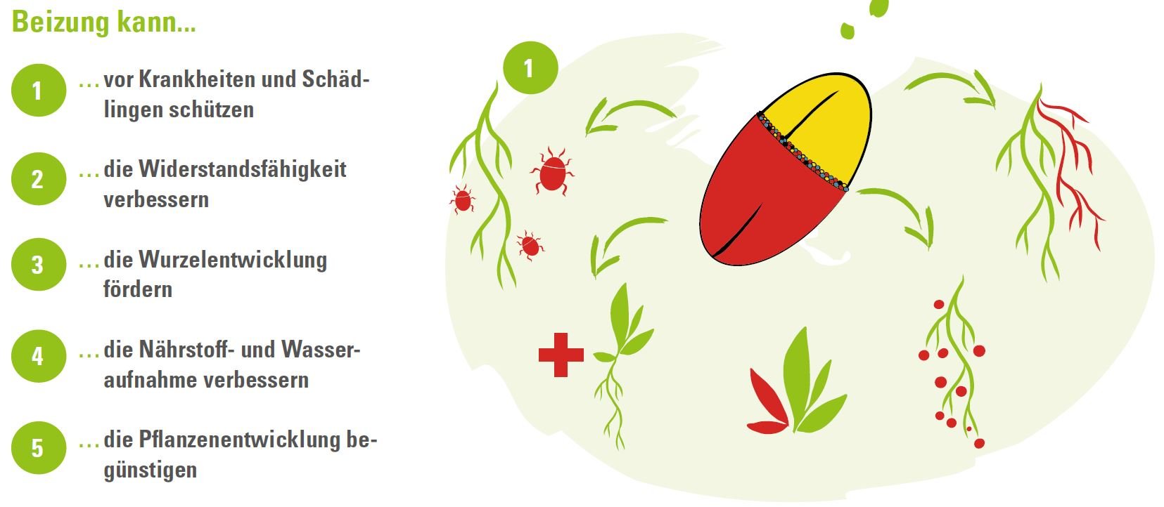 Beizung schützt nämlich mit wenig Aufwandmenge vor Krankheiten und Schädlingen und kann deshalb natürlich auch fördernd für das Pflanzenwachstum sein.