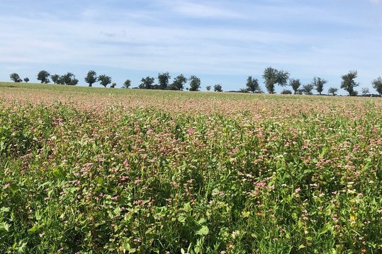 Beispiele für Zwischenfrüchte sind Leguminosen wie Ackerbohnen, Wicken, Erbsen oder Kleearten, die Stickstoff im Boden anreichern können. Es werden auch Blühpflanzen wie Phacelia, Sonnenblume oder Buchweizen verwendet, um für Insekten ein Nektarangebot zu bilden. Für eine gute Bodenbedeckung kommen hingegen Ramtillkraut, Sandhafer oder der Ölrettich zum Einsatz. Je vielfältiger diese Mischung ist, umso größer ist der positive Effekt auf die Artenvielfalt und die Bodenfruchtbarkeit. Der Anbau von Zwischenfrüchten trägt deshalb zur nachhaltigen Bewirtschaftung von landwirtschaftlichen Flächen bei.