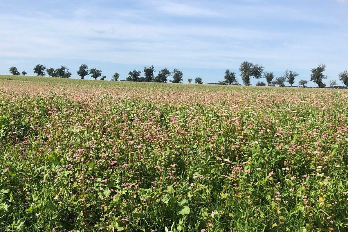 Eine Zwischenfrucht schützt den Boden und verbessert die Bodenfruchtbarkeit, indem sie Humus aufbaut und Nützlinge fördert. Sie bietet nämlich Regenwürmern, nektarliebenden Insekten und vor allem der Mikrobiologie im Boden Nahrung. Das trägt zur Artenvielfalt bei! Außerdem verhindern Zwischenfrüchte Erosion, also die Abtragung vom Boden durch Wasser und Wind, indem sie ihn mit ihrem vielfältigen Wurzelsystem gut verankern und durch die Bedeckung mit Pflanzenmaterial die Bodenoberfläche schützen. Und ganz nebenbei setzen sie auch noch CO2 in Sauerstoff und Humus im Boden um und sammelt Nährstoffe für die folgende Kultur.