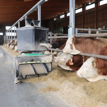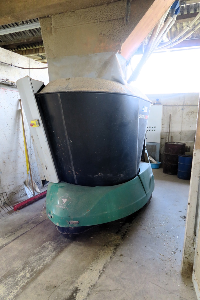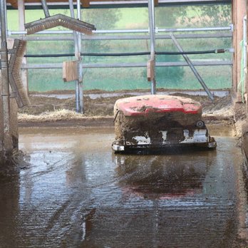 Putzroboter kennst du vielleicht schon von Zuhause, aber auch im Stall kommen sie zum Einsatz! Es gibt welche die fahren den ganzen Tag im Stall umher und beseitigen den Kot der Tiere und reinigen so die Böden. Fütterungsroboter unterstützen bei der Fütterung der Tiere. Sie verteilen zum Beispiel das Futter portionsgerecht an die Tiere und schieben immer wieder das Futter (zum Beispiel Grassilage oder Heu) zu den Tieren, damit diese es besser erreichen können und nach Lust und Laune fressen können.