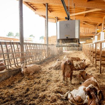 Sensoren in den Ställen überwachen die Temperatur und die Luftfeuchtigkeit im Stall, damit die Tiere stets ein angenehmes Stallklima haben und sich wohlfühlen.